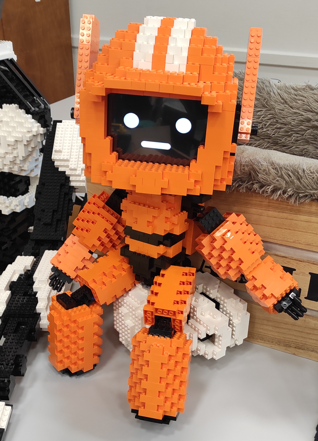 En effet, j'ai intégré un écran dans sa tête et programmé sur celui-ci plusieurs expressions de visage qui s'animaient (avec les oreilles qui bougeaient en même temps)